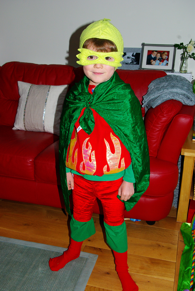 Sure enough, as they reached the school crossing, Ollie looked out and saw lots of his friends dressed normally and got cold feet, rather sadly saying to Hil that he thought he should get changed into his normal clothes, which they did in the car park before walking to school, with the dragon outfit in his bag. Bless him, though, he was determined to wear his costume and so he built up his own courage and got himself changed at lunchtime. When Hilary came to pick the boys up, she was greeted by a cheery little dragon. Well done Olls!!